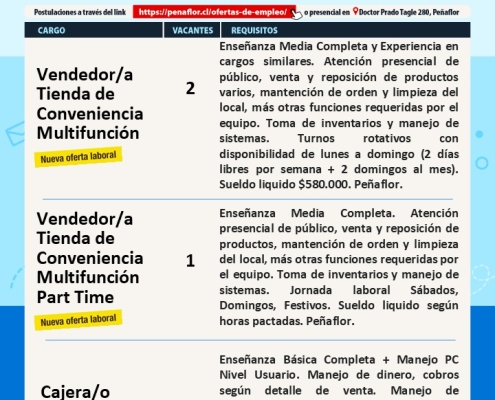 Ofertas de empleoPara postular debes llenar formulario en el siguiente link: