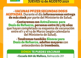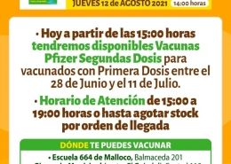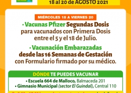 DestacadaDejamos información acerca de la Campaña de Vacunación Covid-19 del 16 al 20 de Agosto.