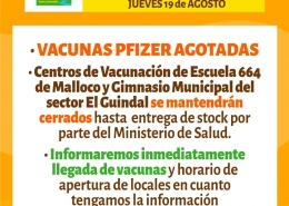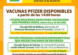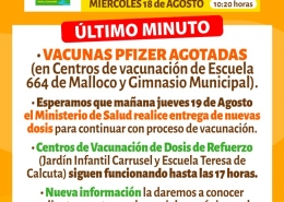 Información Campaña Vacunación Covid-19 Miércoles 19 de Agosto