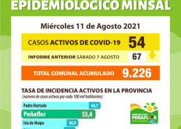 Nuevo Informe Epidemiológico Miércoles 11 de Agosto: 54 Casos Activos en Peñaflor