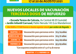 MARTES 17 de AGOSTO: Nuevos Locales de Vacunación sólo para Dosis de Refuerzo