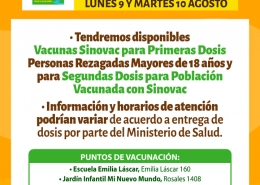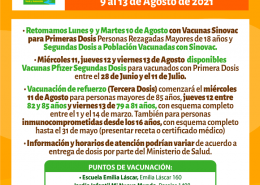 Información Vacunación Covid-19 para Lunes 9 y Martes 10 de Agosto