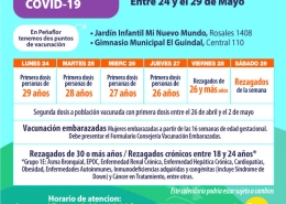 Calendario Vacunación Covid-19 Semana del 24 al 29 de Mayo