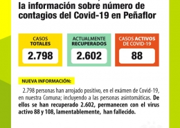 Evolución del Covid-19 en Peñaflor: Evidencia la menor tasa de casos activos en la Provincia, con 88 casos en dicha condición